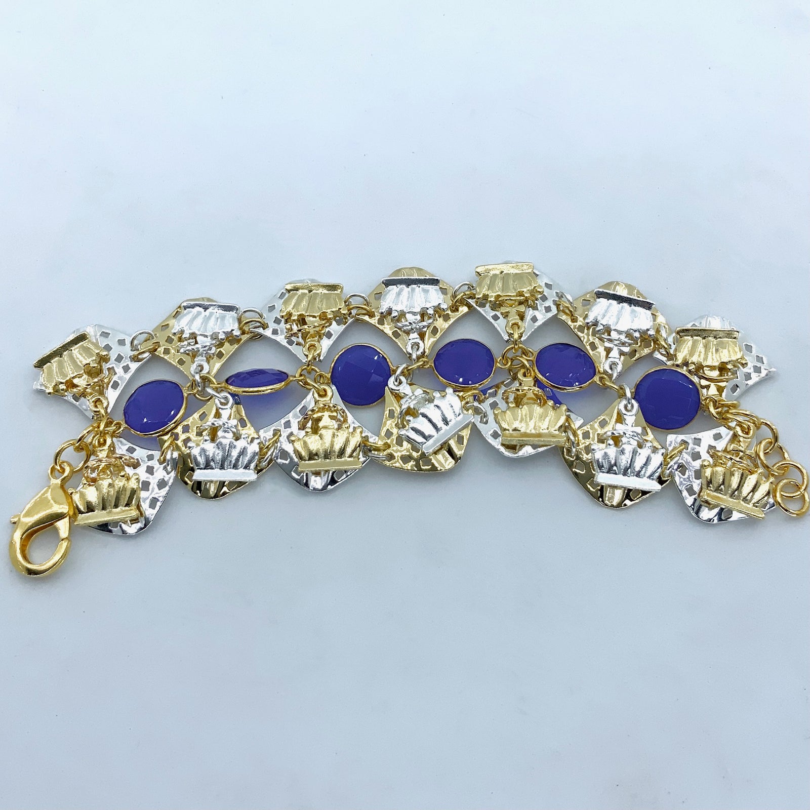 Sumaris' signature one-of-a-kind costume jewelry collection features bracelets designed with vintage and contemporary findings and beads. Â Most are adjustable to 8 inches. Please call if you need a different size.